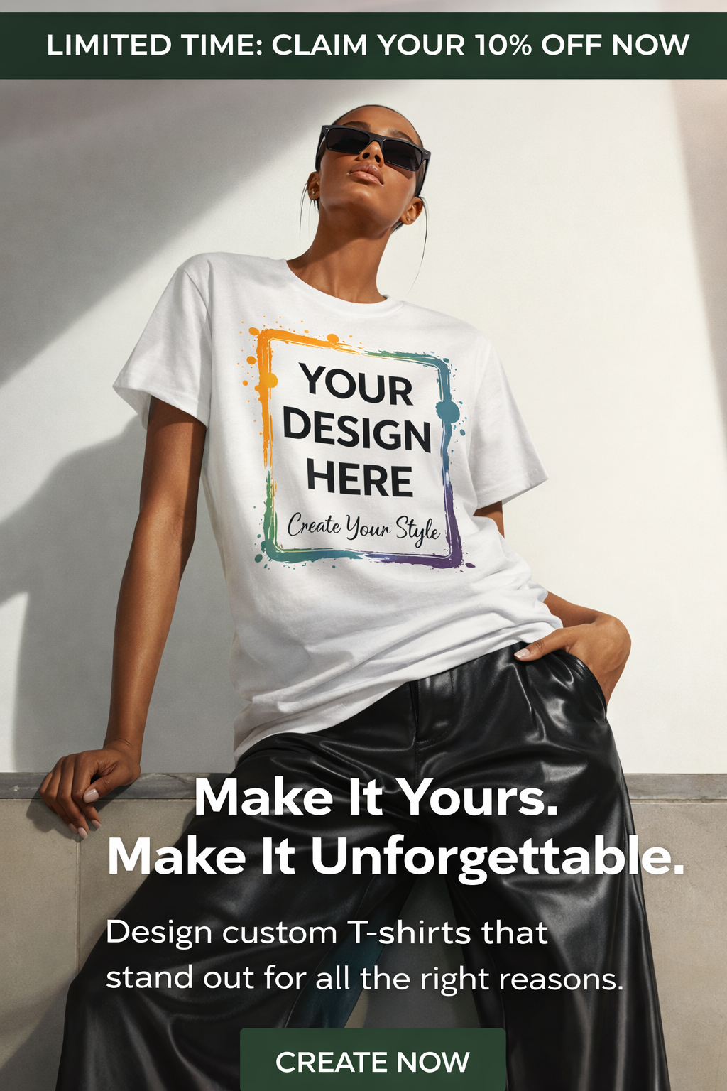 Start designingElevate your everyday look with custom T-shirts designed for comfort, quality, and individuality.